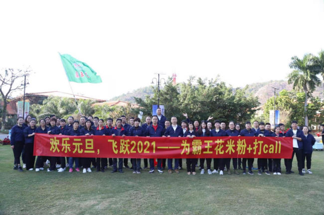 為提升團隊凝聚力和向心力,豐富員工業余生活,營造更激情、愉悅、有干勁的工作氛圍,霸王花食品公司特別組織了一場以“歡樂元旦,飛躍2021——為霸王花米粉+打call”為主題的團建活動,公司行政人員及車間管理人員等共計50余人參加了此次活動。