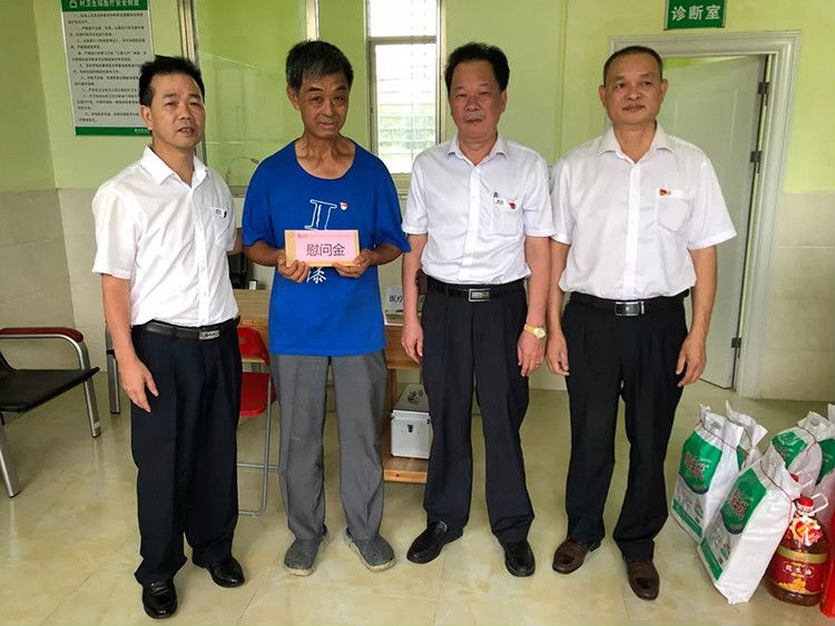 抵達災區后,羅友望同志和黨委委員一行先后走訪了周觀仁、周國富等受災老黨員,慰問中,羅友望同志和老黨員親切交談,詳細詢問他們受災情況,了解他們的家庭、生產、生活、健康等情況,捐贈了米粉、食用油等物資并向他們送上慰問金,鼓勵他們在當地黨委的領導下,勇于克服困難,堅定信心,積極面對生活,加快復產重建。老黨員表示非常感謝霸王花人的暖情關懷,會把黨的關懷和溫暖傳遞到受災黨員和群眾中,會堅定信心,重建家園,永遠跟黨走。